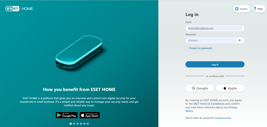 - Click on ESET HOME Account